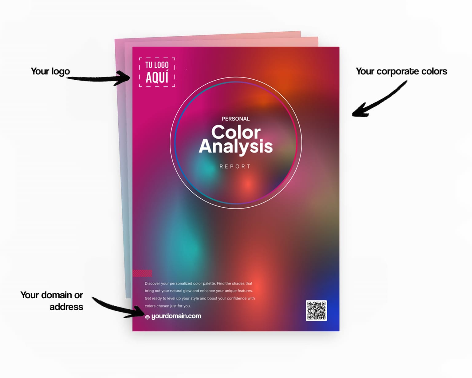 Il PDF finale avrà il tuo branding, senza alcun riferimento a noi